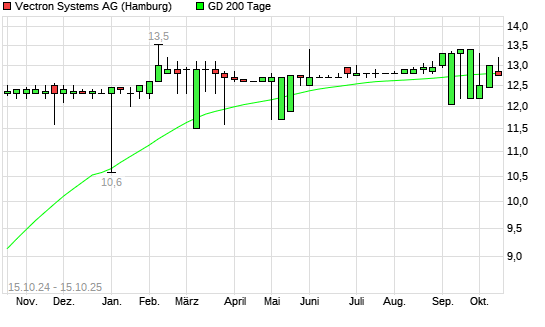 Mit dem Rücksetzer auf 12,75 EUR hat die Vectron Systems-Aktie am 14.10.2025 die 200-Tage-Linie nach unten gekreuzt.