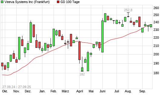 Mit dem Anstieg auf 237,20 EUR hat die Veeva Systems A-Aktie am 26.09.2025 die 100-Tage-Linie nach oben gekreuzt.