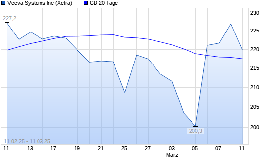 Mit dem Anstieg auf 226,90 EUR hat die Veeva Systems A-Aktie am 10.03.2025 die 20-Tage-Linie nach oben gekreuzt.