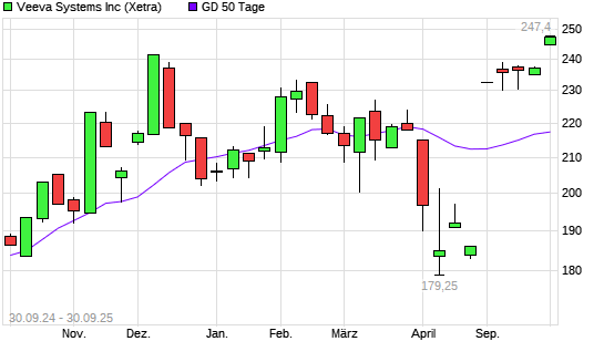 Mit dem Anstieg auf 245,40 EUR hat die Veeva Systems A-Aktie am 29.09.2025 die 50-Tage-Linie nach oben gekreuzt.