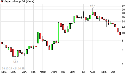 Mit dem Rücksetzer auf 9,46 EUR hat die Veganz Group-Aktie (ISIN DE000A3E5ED2) am 23.10.2025 ein neues 6-Monats-Tief erreicht und damit den Kurs vom 12.05.2025 eingestellt.Die Veganz Group-Aktie ...weiterlesen