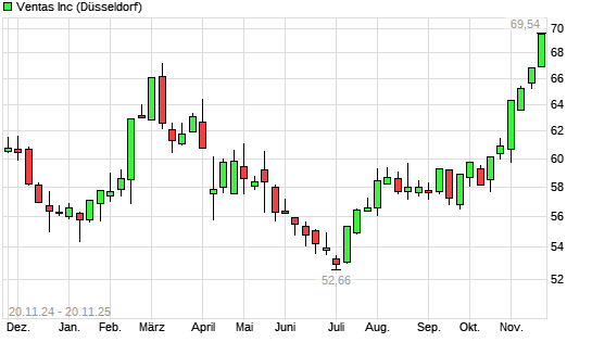 Mit dem Anstieg auf 68,62 EUR hat die Ventas-Aktie (ISIN US92276F1003) am 19.11.2025 ein neues 5-Jahres-Hoch erreicht und damit den Kurs vom 18.11.2025 eingestellt.