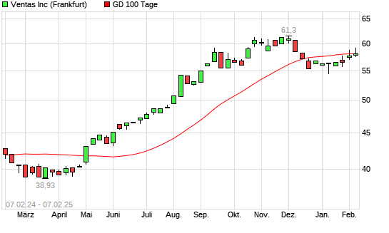 Mit dem Anstieg auf 58,38 EUR hat die Ventas-Aktie am 06.02.2025 die 100-Tage-Linie nach oben gekreuzt.