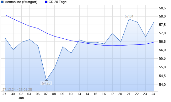 Mit dem Anstieg auf 56,54 EUR hat die Ventas-Aktie am 24.01.2025 die 20-Tage-Linie nach oben gekreuzt.