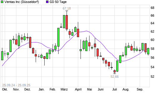 Mit dem Anstieg auf 57,88 EUR hat die Ventas-Aktie am 24.09.2025 die 50-Tage-Linie nach oben gekreuzt.