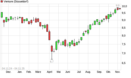 Mit dem Anstieg auf 9,95 EUR hat die Venture-Aktie (ISIN SG0531000230) am 03.11.2025 ein neues 12-Monats-Hoch erreicht und damit den Kurs vom 24.10.2025 eingestellt.