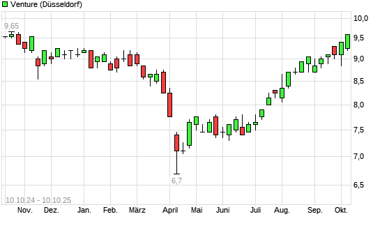 Mit dem Anstieg auf 9,60 EUR hat die Venture-Aktie (ISIN SG0531000230) am 09.10.2025 ein neues 6-Monats-Hoch erreicht und damit den Kurs vom 23.09.2025 eingestellt.