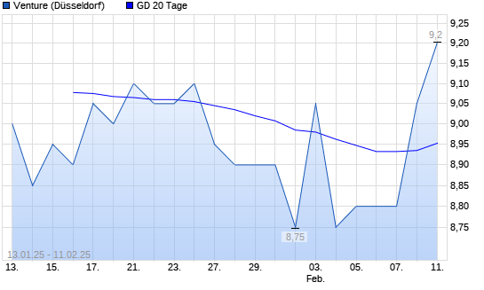 Mit dem Anstieg auf 9,05 EUR hat die Venture-Aktie am 10.02.2025 die 20-Tage-Linie nach oben gekreuzt.