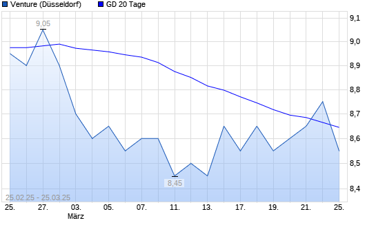 Mit dem Anstieg auf 8,75 EUR hat die Venture-Aktie am 24.03.2025 die 20-Tage-Linie nach oben gekreuzt.