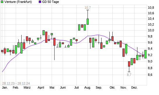 Mit dem Anstieg auf 9,35 EUR hat die Venture-Aktie am 27.12.2024 die 50-Tage-Linie nach oben gekreuzt.