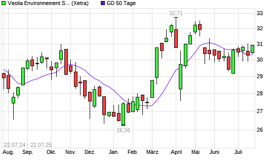 Mit dem Anstieg auf 30,60 EUR hat die Veolia Environnement-Aktie am 21.07.2025 die 50-Tage-Linie nach oben gekreuzt.