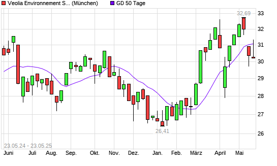 Mit dem Rücksetzer auf 30,90 EUR hat die Veolia Environnement-Aktie am 22.05.2025 die 50-Tage-Linie nach unten gekreuzt.