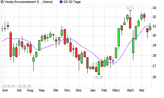 Mit dem Anstieg auf 31,55 EUR hat die Veolia Environnement-Aktie am 21.05.2025 die 50-Tage-Linie nach oben gekreuzt.Die Veolia Environnement-Aktie befindet sich seit dem 09.04.2025 im langfristigen ...weiterlesen