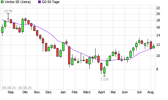 Mit dem Anstieg auf 11,99 EUR hat die Verbio Vereinigte Bioenergie-Aktie am 04.08.2025 die 50-Tage-Linie nach oben gekreuzt.
