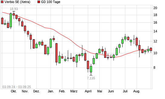 Mit dem Rücksetzer auf 10,58 EUR hat die Verbio Vereinigte Bioenergie-Aktie am 02.09.2025 die 100-Tage-Linie nach unten gekreuzt.