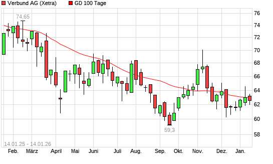 Mit dem Anstieg auf 63,10 EUR hat die Verbund-Aktie am 13.01.2026 die 100-Tage-Linie nach oben gekreuzt.