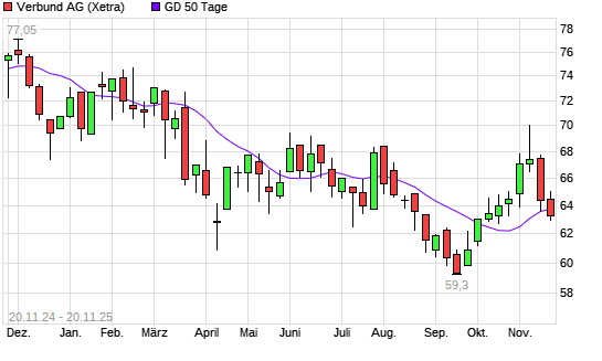 Mit dem Rücksetzer auf 63,25 EUR hat die Verbund-Aktie am 19.11.2025 die 50-Tage-Linie nach unten gekreuzt.