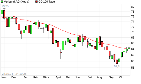 Mit dem Anstieg auf 64,85 EUR hat die Verbund-Aktie am 23.10.2025 die 100-Tage-Linie nach oben gekreuzt.Die Verbund-Aktie befindet sich seit dem 05.12.2024 im langfristigen Abwärtstrend und ...weiterlesen