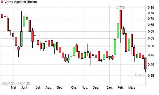 Mit dem Rücksetzer auf 0,32 EUR hat die Verde Agritech-Aktie (ISIN SGXZ27777630) am 03.04.2025 ein neues 3-Jahres-Tief erreicht und damit den Kurs vom 09.12.2024 eingestellt.