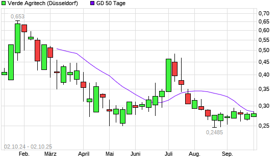 Mit dem Anstieg auf 0,28 EUR hat die Verde Agritech-Aktie am 01.10.2025 die 50-Tage-Linie nach oben gekreuzt.