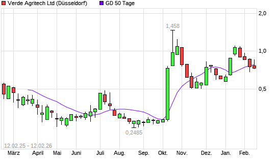 Mit dem Anstieg auf 0,83 EUR hat die Verde Agritech-Aktie am 11.02.2026 die 50-Tage-Linie nach oben gekreuzt.