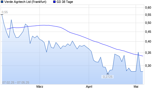 Mit dem Rücksetzer auf 0,28 EUR hat die Verde Agritech-Aktie am 06.05.2025 die 38-Tage-Linie nach unten gekreuzt.