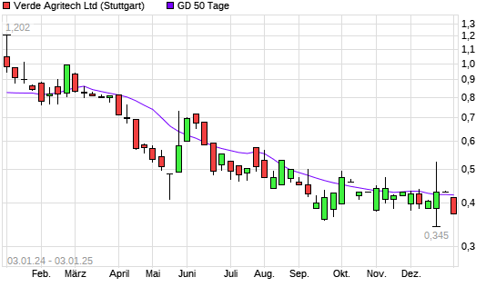 Mit dem Rücksetzer auf 0,37 EUR hat die Verde Agritech-Aktie am 02.01.2025 die 50-Tage-Linie nach unten gekreuzt.