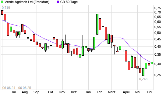 Mit dem Rücksetzer auf 0,29 EUR hat die Verde Agritech-Aktie am 05.06.2025 die 50-Tage-Linie nach unten gekreuzt.