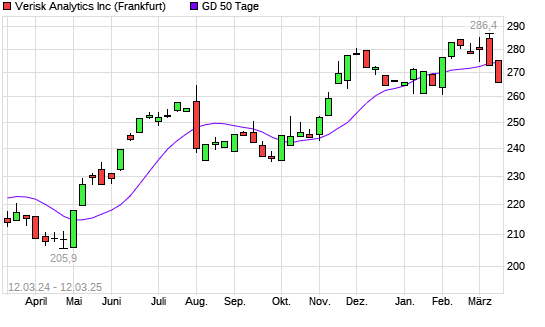 Mit dem Rücksetzer auf 273,10 EUR hat die Verisk Analytics-Aktie am 11.03.2025 die 50-Tage-Linie nach unten gekreuzt.