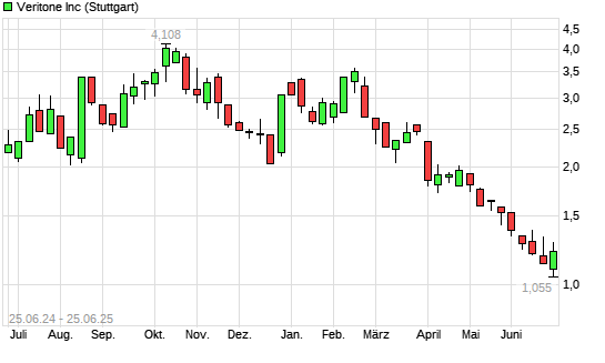 Mit dem Rücksetzer auf 1,13 EUR hat die Veritone-Aktie (ISIN US92347M1009) am 24.06.2025 ein neues All-Time-Low erreicht und damit den Kurs vom 23.06.2025 eingestellt.