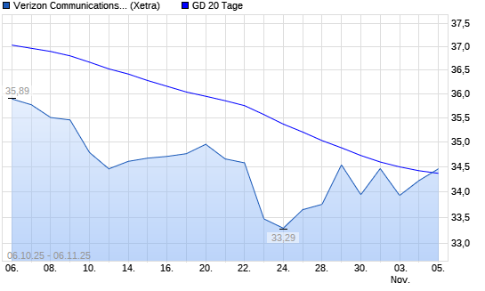 Mit dem Anstieg auf 34,52 EUR hat die Verizon-Aktie am 05.11.2025 die 20-Tage-Linie nach oben gekreuzt.