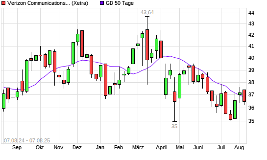Mit dem Rücksetzer auf 36,56 EUR hat die Verizon-Aktie am 06.08.2025 die 50-Tage-Linie nach unten gekreuzt.