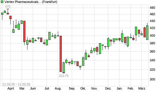 Mit dem Anstieg auf 428,90 EUR hat die Vertex Pharmaceuticals-Aktie (ISIN US92532F1003) am 10.03.2026 ein neues 6-Monats-Hoch erreicht und damit den Kurs vom 13.02.2026 eingestellt.