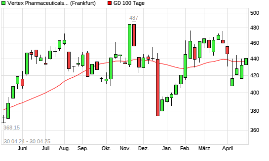Mit dem Anstieg auf 434,80 EUR hat die Vertex Pharmaceuticals-Aktie am 29.04.2025 die 100-Tage-Linie nach oben gekreuzt.