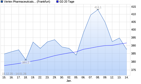 Mit dem Anstieg auf 394,75 EUR hat die Vertex Pharmaceuticals-Aktie am 13.01.2026 die 20-Tage-Linie nach oben gekreuzt.
