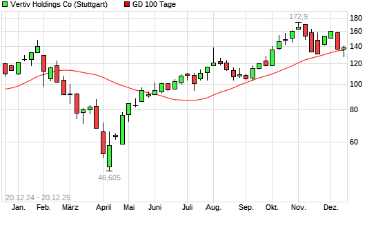 Mit dem Anstieg auf 137,18 EUR hat die Vertiv Holdings-Aktie am 19.12.2025 die 100-Tage-Linie nach oben gekreuzt.