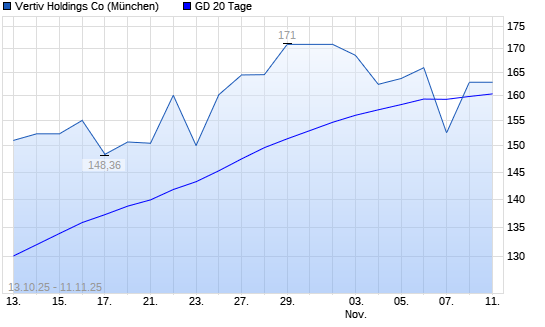 Mit dem Anstieg auf 163,86 EUR hat die Vertiv Holdings-Aktie am 10.11.2025 die 20-Tage-Linie nach oben gekreuzt.