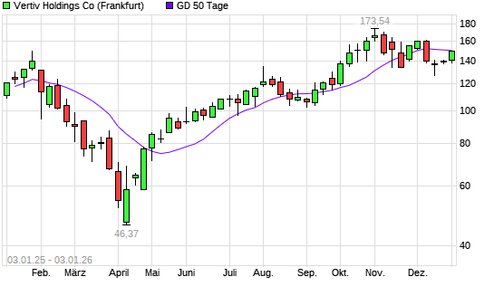 Mit dem Anstieg auf 150,14 EUR hat die Vertiv Holdings-Aktie am 02.01.2026 die 50-Tage-Linie nach oben gekreuzt.