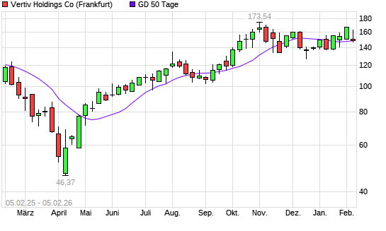 Mit dem Rücksetzer auf 147,72 EUR hat die Vertiv Holdings-Aktie am 04.02.2026 die 50-Tage-Linie nach unten gekreuzt.