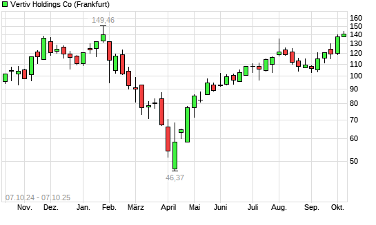 Mit dem Anstieg auf 141,00 EUR hat die Vertiv Holdings-Aktie (ISIN US92537N1081) am 06.10.2025 ein neues 6-Monats-Hoch erreicht und damit den Kurs vom 01.10.2025 eingestellt.Die Vertiv Holdings-Aktie ...weiterlesen