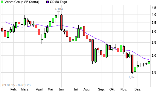 Mit dem Anstieg auf 1,81 EUR hat die Verve Group-Aktie am 02.01.2026 die 50-Tage-Linie nach oben gekreuzt.