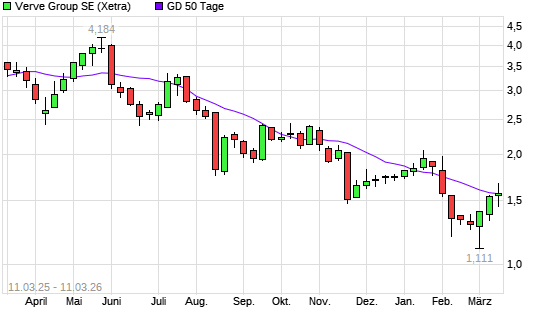 Mit dem Anstieg auf 1,60 EUR hat die Verve Group-Aktie am 10.03.2026 die 50-Tage-Linie nach oben gekreuzt.
