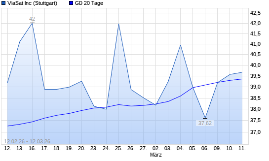Mit dem Anstieg auf 39,12 EUR hat die ViaSat-Aktie am 11.03.2026 die 20-Tage-Linie nach oben gekreuzt.