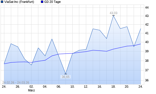 Mit dem Rücksetzer auf 39,50 EUR hat die ViaSat-Aktie am 23.03.2026 die 20-Tage-Linie nach unten gekreuzt.