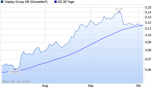 Mit dem Rücksetzer auf 0,11 EUR hat die Viaplay Group B-Aktie am 03.10.2025 die 38-Tage-Linie nach unten gekreuzt.