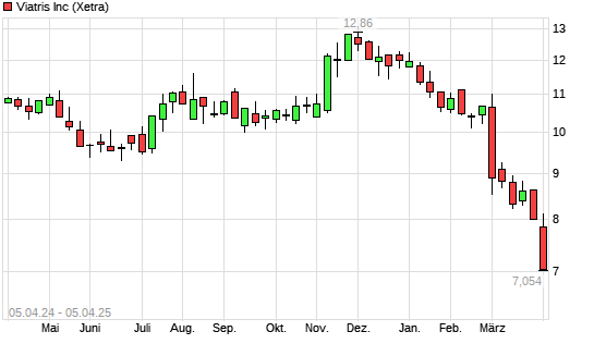 Mit dem Rücksetzer auf 7,01 EUR hat die Viatris-Aktie (ISIN US92556V1061) am 04.04.2025 ein neues 10-Jahres-Tief erreicht und damit den Kurs vom 03.04.2025 eingestellt.