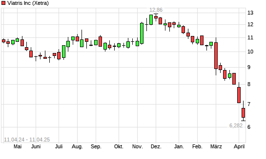 Mit dem Rücksetzer auf 6,26 EUR hat die Viatris-Aktie (ISIN US92556V1061) am 10.04.2025 ein neues 10-Jahres-Tief erreicht und damit den Kurs vom 09.04.2025 eingestellt.