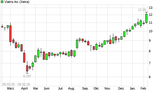 Mit dem Anstieg auf 12,19 EUR hat die Viatris-Aktie (ISIN US92556V1061) am 04.02.2026 ein neues 12-Monats-Hoch erreicht und damit den Kurs vom 03.02.2026 eingestellt.