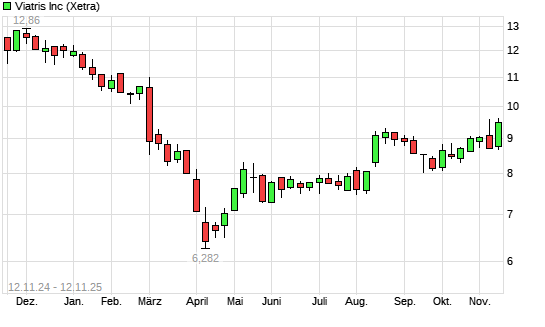 Mit dem Anstieg auf 9,61 EUR hat die Viatris-Aktie (ISIN US92556V1061) am 11.11.2025 ein neues 6-Monats-Hoch erreicht und damit den Kurs vom 20.08.2025 eingestellt.