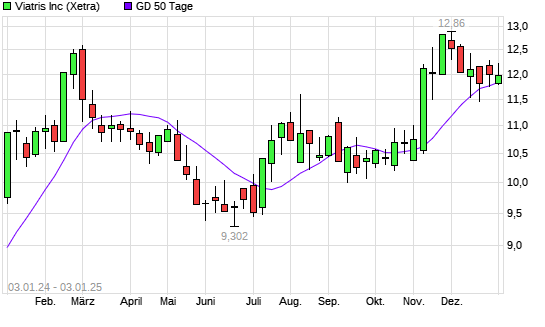 Mit dem Anstieg auf 12,20 EUR hat die Viatris-Aktie am 02.01.2025 die 50-Tage-Linie nach oben gekreuzt.
